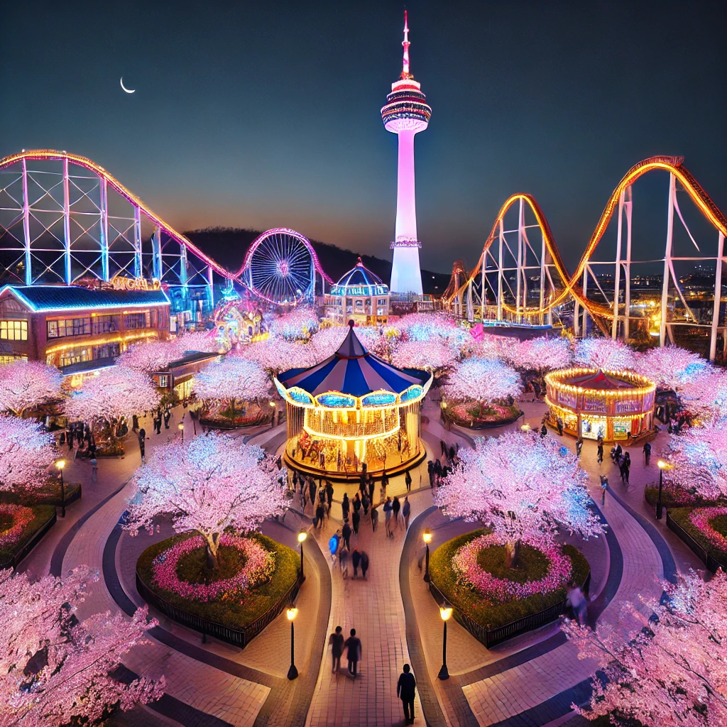 이월드 주변으로 벚꽃길이 펼쳐지며, 놀이공원과 함께 즐길 수 있는 독특한 벚꽃 명소입니다. 특히 밤이 되면 조명과 함께 로맨틱한 분위기를 연출합니다. 대구의 대표적인 벚꽃 축제 장소로, 83타워 전망대에서 바라보는 대구 시내와 벚꽃의 조화는 환상적인 경관을 제공합니다. 놀이기구를 타며 벚꽃을 감상하는 것도 이곳만의 특별한 매력입니다.